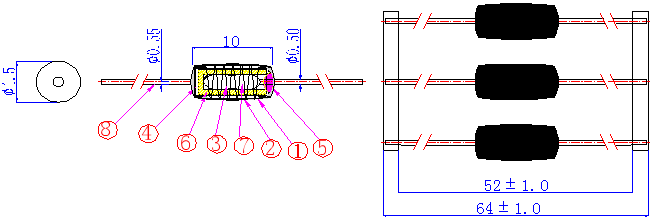5.1Pulling test:Fixed the body👃🏿,applied level pull force of 5N to the lead wire for 1 minute, there shall be no damage with the body and lead wire.